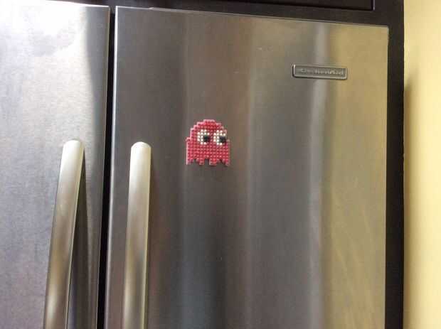 Hilo hilado o bordado (rojo, blanco y negro, pero si su hacer Pinky, Inky y Clyde, sustituir el rojo con rosa, amarillo, o azul)