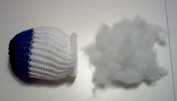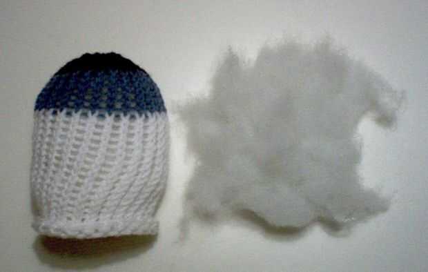 Utilice relleno de fiberfill poly blanco, seguirá siendo algo visible a través de los orificios en el tubo de punto, pero no caerá.
