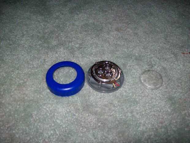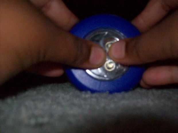 Usted tiene que mantener el anillo azul con los dedos sin tocar la espalda luego empuje con los pulgares el área de cristal, todo esto debe desmoronarse...