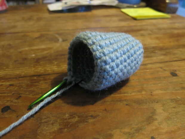 Ronda 24: Sc en el siguiente 24 sts, (sc2tog) repetir 3 veces (27 sts)