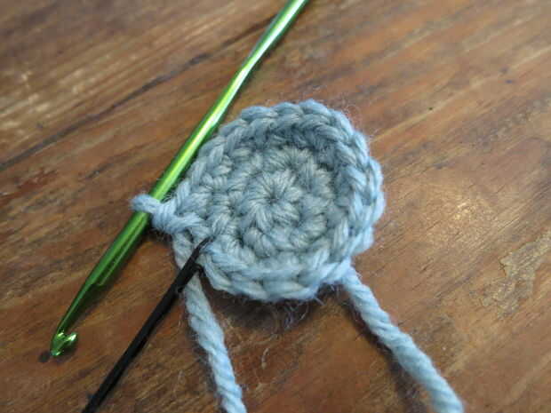 Ronda 3: (2 sc en el siguiente st, sc en el siguiente st) repetir 5 veces, 2 hdc en siguiente st, hdc en st pasado (18 CTS)