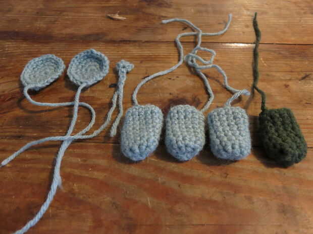 Usted notará que el elefante en las fotos es azul, no blanco como se muestra en el móvil final. El elefante azul es ganchillo simplemente para ver las fotos paso a paso para este Instructable y no fue utilizado en el móvil final. Usted también notará una de sus patas es verde. Corrí fuera del hilo azul así que hice uno verde. Hay mucho espacio para la libertad creativa hacer tu elefante multi coloreada. Podría añadir rayas en el cuerpo, hacer los 'cascos' de los pies de diversos colores, etc, etc..