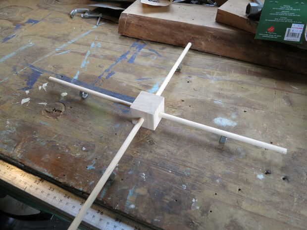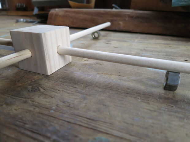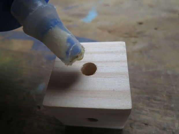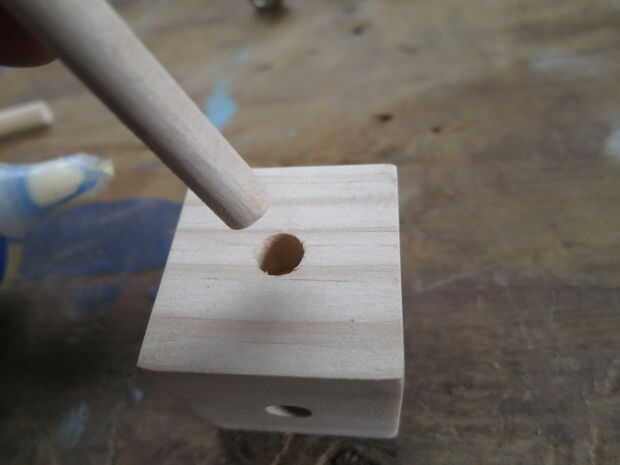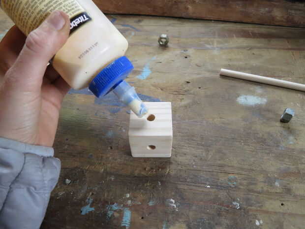 Una vez que todas las espigas se pegan en el cubo, configurar la derecha móvil a secas. Coloqué una pequeña tuerca en cada espiga para que se sequen en un ángulo de 90 grados al cubo. Sin la tuerca en su lugar, yo estaba preocupado de que sag como se secado.
