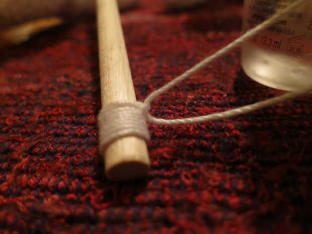 Después de atar a todos los elefantes a los tacos utilicé esmalte de uñas transparente para fijar los nudos. Se puede utilizar pegamento o cualquier pegamento secado claro permanente.