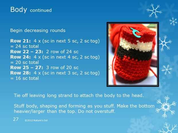 Fila 28: 4 x (sc en el siguiente 3 sc, tog sc 2) = 16 total sc