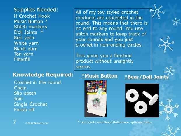 La diapositiva muestra qué materiales necesita. Las articulaciones de botón y muñeco/oso de música son opcionales. Voy a hacer una instrucción similar para un "estante" Santa como una decoración que no articuló las piernas.
