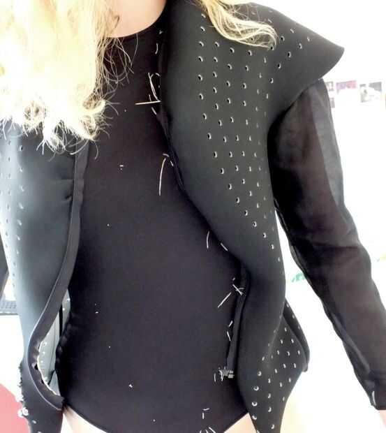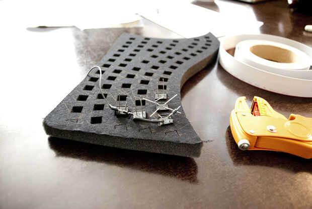 La construcción del cuerpo y la capa exterior con los agujeros circulares puede hacerse por separado de la construcción de la capa de espuma y su integración de la electrónica. Más adelante se pondrá a las dos capas.
