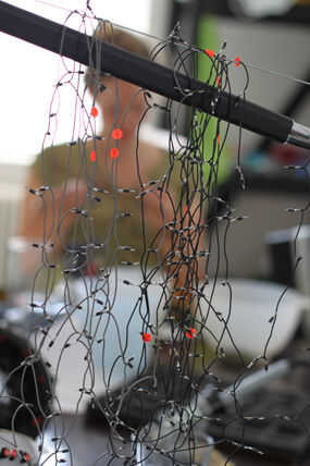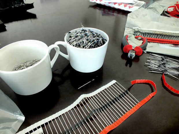 Utilizamos estos diodos que bastante eficientemente fueron soldadas en guirnaldas que luego pueden conectarse fácilmente con los puntos del tirón.