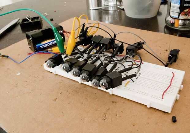 Hicimos un dispositivo de prueba con un protoboard y una batería para probar una serie de flip puntos todos a la vez.