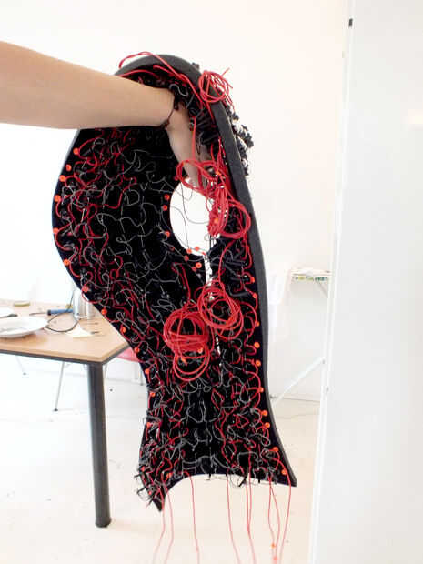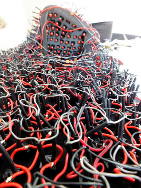 Pronto el diseño comienza a parecer un desastre, pero asegúrese de mantener el caos organizado! Use mucho calor termoencogible para asegurarse de que no habrá ningún cortocircuito. Todos los conductores de los puntos del tirón que se sueldan los cables pueden ser curva plana posteriormente.
