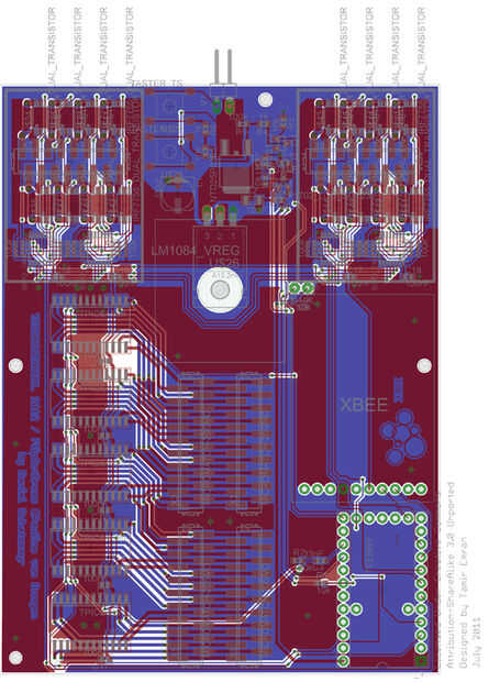 El pequeño tablero del PWB de x115mm 86 está integrado en la parte posterior del vestido, entre los omóplatos. Cuenta con potencias de 70, un módulo inalámbrico (XBEE), una ranura para tarjeta SD y es capaz de ofrecer hasta 5A.