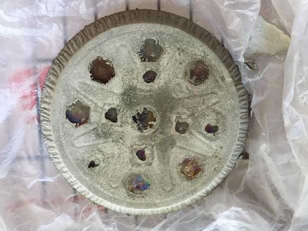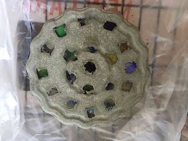 Extraiga la bandeja y deja que el hormigón continúe seco. Use un cepillo de dientes para quitar el cemento que cubre las piezas de vidrio.