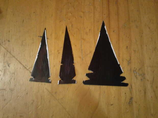 El de la izquierda es mi primera, su afilado básico pero muy. el medio tiene dos hendiduras pequeñas, los agregué a propósito. la tercera es la más grande y más.