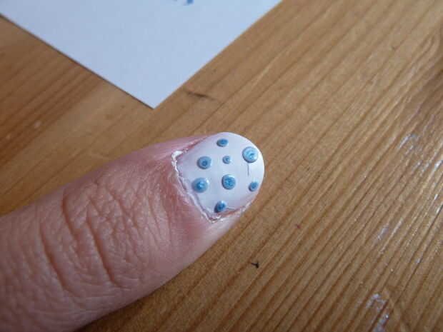 Cuando se ha secado un poco, puede tomar un pedazo de papel y aplane los puntos