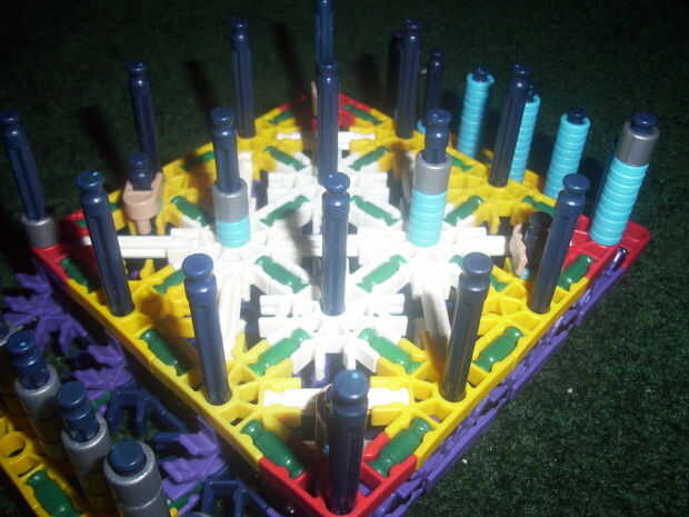 Nota: Puesto que los anillos azules son más pequeños que los anillos gris, la persona con los anillos azules coloca 3 anillos azules en cualquier barra azul quieren desde 3 anillos azules es igual a 1 anillo gris.