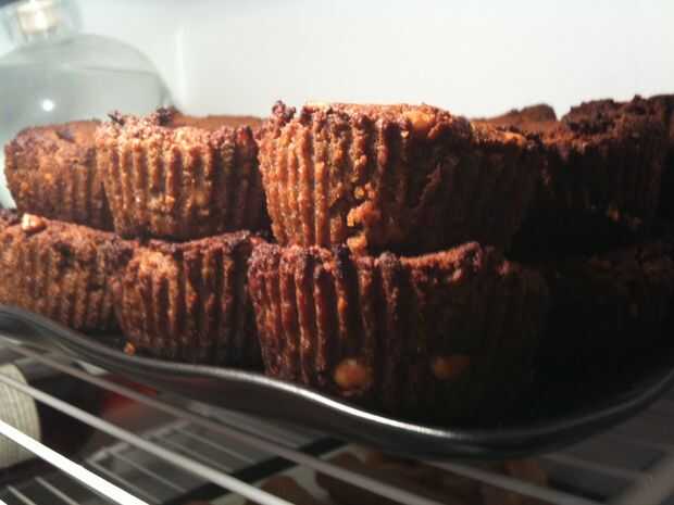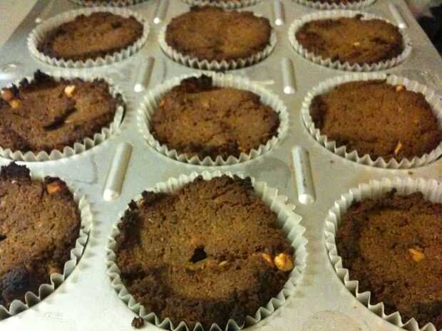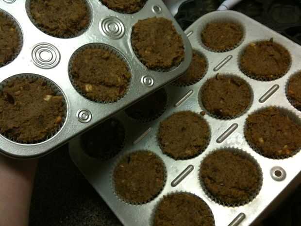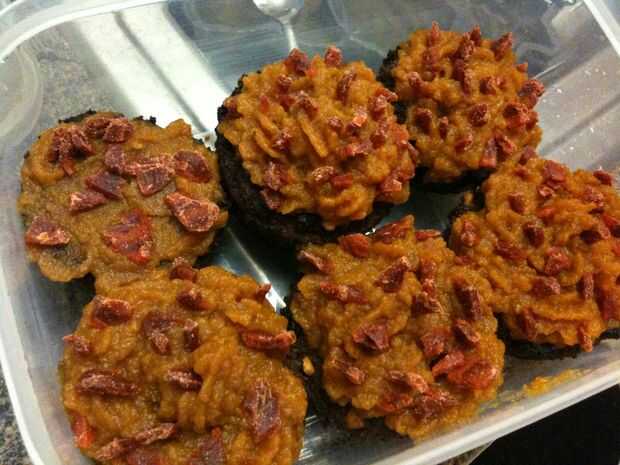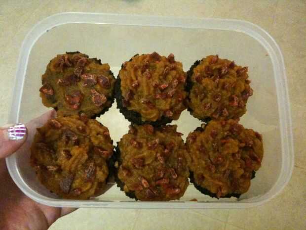 Llene los vasos hasta que han sobre un medio o cuarto pulgadas de izquierda en la parte superior. Que se levante, pero solo un poquito. Allí perfectamente bien y hacer las tapas lisas! Hornear durante 35 minutos y deben salir un poco oscuro, debido a la comida de perro seca. Sujetan muy bien! Ahora, solo hielo con la calabaza y se pueden recargar con Beggin ' tiras chispitas! (Solo cortarlas en pedazos pequeños.) Usar esto como un reemplazo de comida, porque bastante es llenado por ellos.