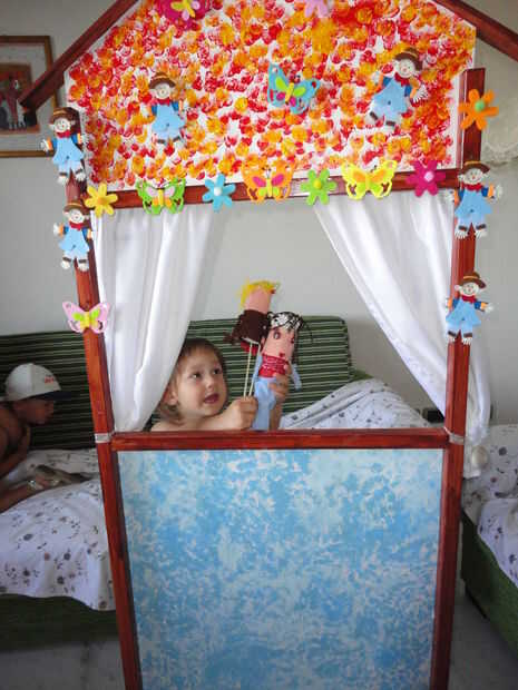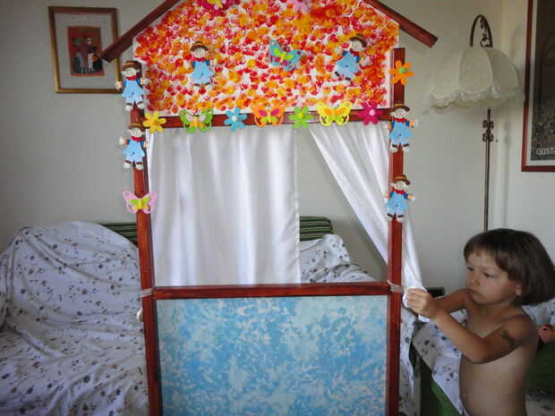 El objetivo de este proyecto es darle a mis hijos un juego divertido e instructivo: Teatro de la marioneta. Está construido enteramente con madera para mayor resistencia y la cortina con trozo de tela. No es muy caro y fácil de construir. La altura es buena para mi hijo mayor (cinco años). El proyecto está disponible con google sketchup o puedes ver las fotos en el instructable. Mi pintura es muy terrible pero ciertamente puede hacer mejor y para mejorar su cine puede pegar decoraciones como lo hice. Aquí puede descargar el programa "Sketchup": http://sketchup.google.com/ , es gratis, muy fácil de usar y permite ampliar el información y visualizar el teatro en 3D.