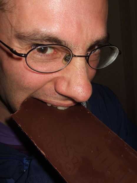 Convirtiendo literalmente el concepto de pies boca abajo! Para tomar su forma, este pastel en forma de una barra de chocolate se cuece al horno en 8 agujeros un poco profundas 12 hoyos cuadrados muffin/brownie (cada cuadrado 2-1/4 "x 2-1/4" x 1&