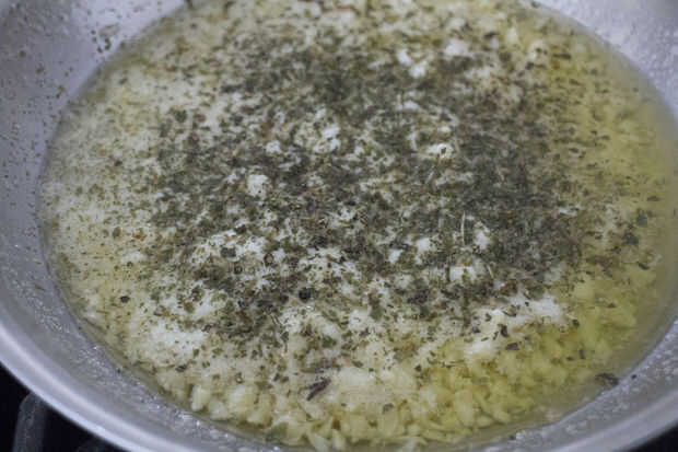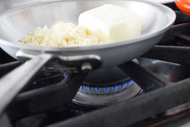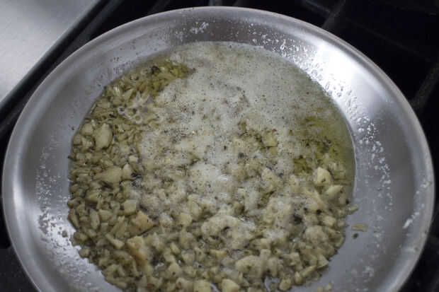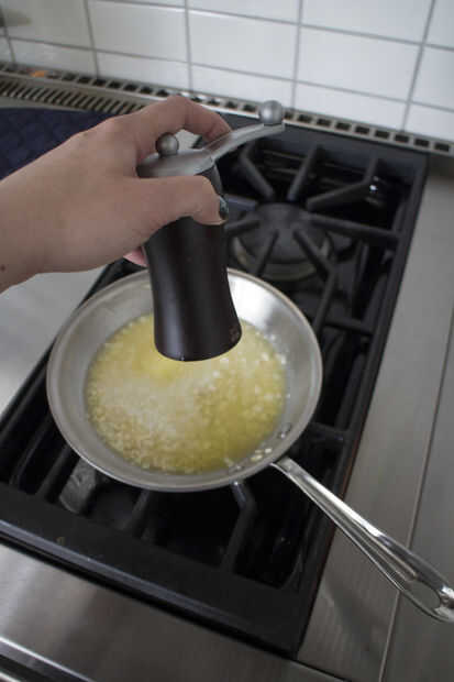 Una vez que se derrite la mantequilla, añadir una pizca de sal.