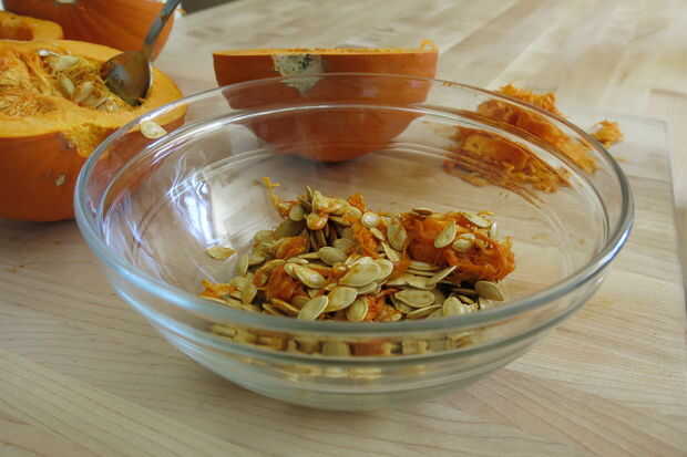 Apartar la mugre si usted quiere tomar los pasos adicionales para tostar las semillas para una merienda sabrosa. Si no - tirar esa mugre en el compost. O alimentar a sus pollos. O si tienes un loro podría disfrutar algunos goop calabaza de dulces.