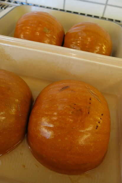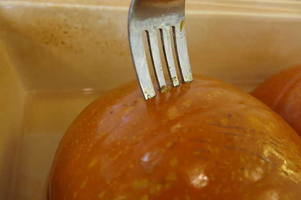 Dejar que el fresco de calabazas cocidas hasta que son fáciles de manejar antes de mover hacia el siguiente paso. 15 - 20 minutos debería ser suficientes.