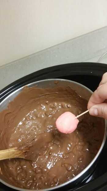 Pegue un palillo de dientes en una bola cereza congelada y cubierta de chocolate. Coloque sobre papel de cera. Repita con el resto relleno de cereza.