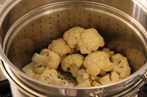 Poner la coliflor en una vaporera con agua justo por debajo del nivel de vapor y llevar a ebullición.