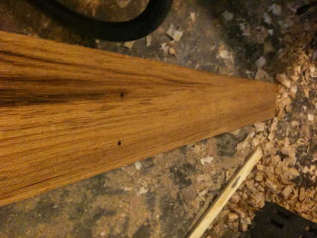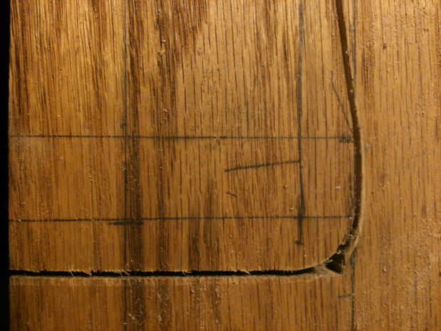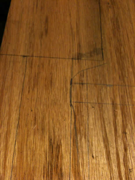Seguir adelante y extienda el tamaño y las dimensiones de la paleta derecha en la cara de la Junta. También es una buena idea al hacer tu primer áspero cortes para permitir 1/8"+ extra para tener en cuenta la anchura de la hoja y errores, etc.. Si usted tiene cualquier corte apretado o estrecho entre varios elementos, sacar donde debe ir la hoja. Hice el corte para separar las dos palas con una sierra de calar.