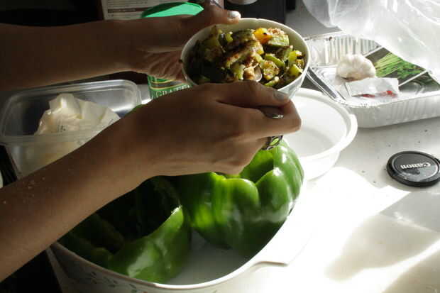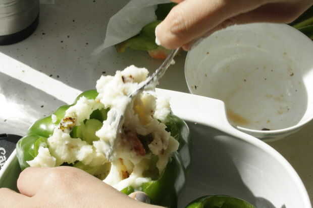 14. tapa con queso parmesano y pimienta, si lo desea, añada el queso y sacar con pala en el relleno de queso más