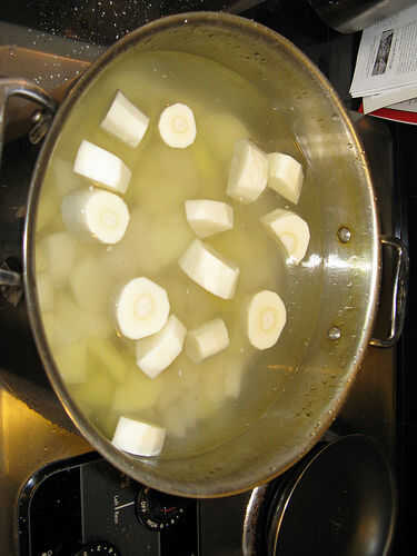 • Agregue las papas y chirivía agua