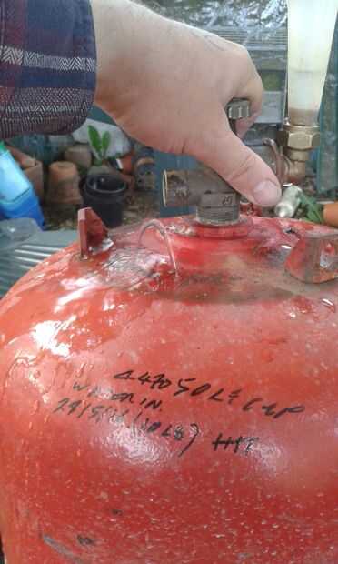 Mi segundo cilindro era más grande pesaría casi 60kg cuando se llena de agua y necesita un aceite de 45 galones tambor reposar. Cuando recopilé este cilindro, descubrí que había estado de pie durante algún tiempo con la válvula abierta. Esto quiere decir que contiene una mezcla de aire combustible. Como tal incluso no considerar tratando de destornillar la válvula, y dado lo difícil resultó para ser que me alegro yo no.