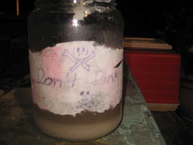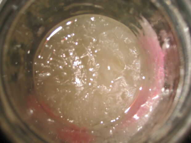 Ahora apague la placa caliente y vierta la solución en un frasco de vidrio después de calentar por unos 3-4 minutos. Si es necesario para así no hacer un lío, embudo la solución. Cuando esté listo verter la solución en el frasco que tenga que quitar algunos del salitre que ha comenzado ya a recristalizan dentro del pote raspando hacia fuera con su palillo de la pintura. Si quita cualquier salitre desde dentro de la olla, ponerla en la solución.