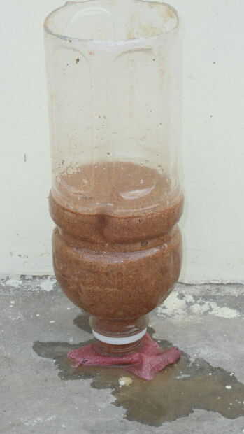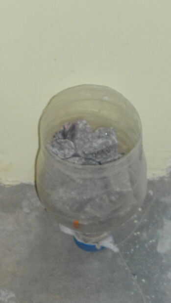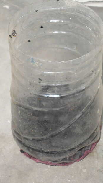 Relleno de carbón, arena y cantos rodados en sus botellas.