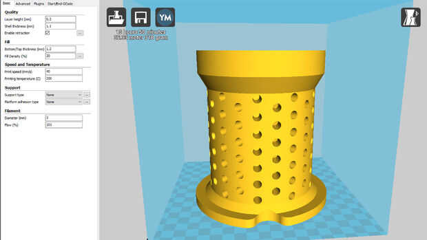 El acoplador para los ventiladores de 120mm, el acoplador para el filtro y el filtro sí mismo se imprimen en la misma dirección con la misma configuración. Dependiendo de la impresora, las tolerancias en la banda de rodadura pueden ser un poco demasiado apretadas y pueden requerir un lijado para que se ajuste. Todos los agujeros para los tornillos de M3 deben ser autorroscantes.