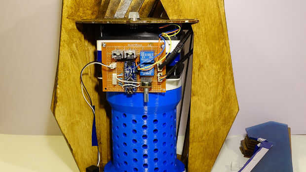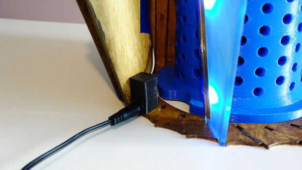 Primero vamos a terminar todos los cables. Se pueden conectar los ventiladores y el enchufe de alimentación impresión se puede pegar en lugar después de soldar los cables y el conector en él. Ahora es el momento de hacer una última prueba final para comprobar si funciona el sistema completo y toda la electrónica. Si todo está bien puede empezar a pegar las últimas costillas en lugar. Sugeriría comenzar conectando la costilla LED y poner en su lugar, luego debo colocar la costilla de madera especial con el corte de los cables del ventilador y el sensor. Luego hasta se pone las restantes 7 costillas y auge. Se realiza el ensamblado principal!!!!