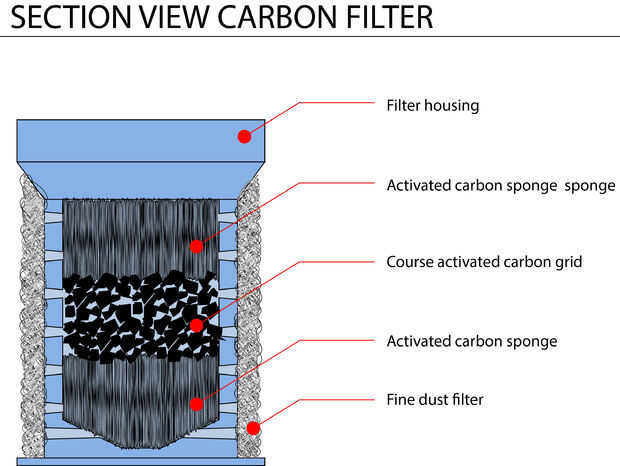 La esponja de carbón activado también es un producto hecho para peceras que funciona muy bien como un medio de filtro de aire. Lo mejor de estas esponjas es que son agradables y firme y así puede ser utilizados como cubierta para que la parrilla de carbón activado no caiga hacia fuera de la carcasa del filtro. Busca una esponja cuadrada por lo menos 8 por 8 centímetros y corte está aproximadamente alrededor por lo que cabe perfectamente dentro de la carcasa del filtro.