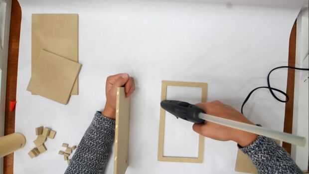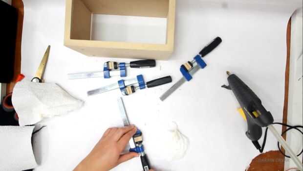 Una vez que tengas todas las piezas cortan de la caja es hora de conectarlos. Prefiero poner algun pegamento amarillo en los bordes, así como algunos pegamento caliente. El pegamento caliente funciona como una pinza ya seca y pone el pegamento amarillo.