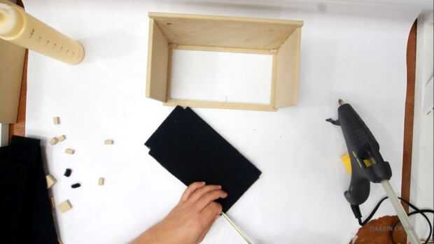 Estoy poniendo en un par de estos pequeños soportes en las esquinas para proporcionar fuerza adicional un poco. Ahora, como un filtro que ordené un filtro de carbón para un ventilador de gama. Sólo estoy encajándola en el cuadro y entonces estoy haciendo muescas en hacia fuera el espacio para los pequeños soportes en las esquinas. También estoy duplicando con dos piezas de filtro y continuando sólo armar la caja. Yo estoy también pegar algunas piezas de soporte más gruesos que yo se pegar en el cuadro que el respaldo se atornille a.