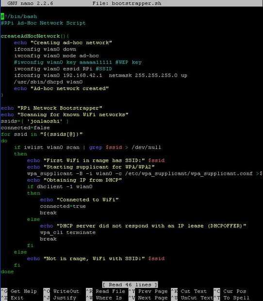 Este paso me trajo un montón de frustración y casi le di hasta que me di cuenta que era mi adaptador de WiFi que no funcionaba correctamente. Creo que algunos dongles WiFi no puede extraer suficiente energía para modo ad hoc sin un concentrador USB externo. Una vez completado estos dos pasos debe tener una conexión de red disponible a su Pi aun cuando allí no es un router disponible. Ahora configurar tu Pi a auto-carga el parche en el arranque.