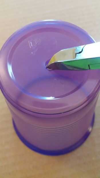 En primer lugar, conecte la pistola de pegamento caliente por lo que puede calentar. A continuación, utiliza la herramienta afilada, poke agujeros en el fondo de cada taza. Si es necesario, para hacer que toda la línea, utilice un marcador para hacer un punto para que te sepa donde hacer los agujeros. Tienen que ser sólo lo suficientemente grande como para caber una luz.
