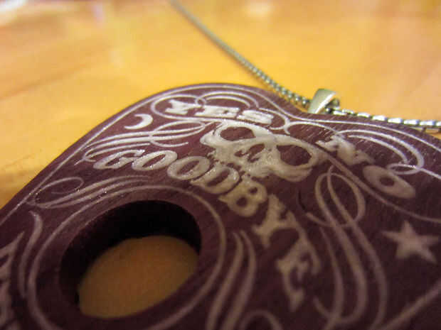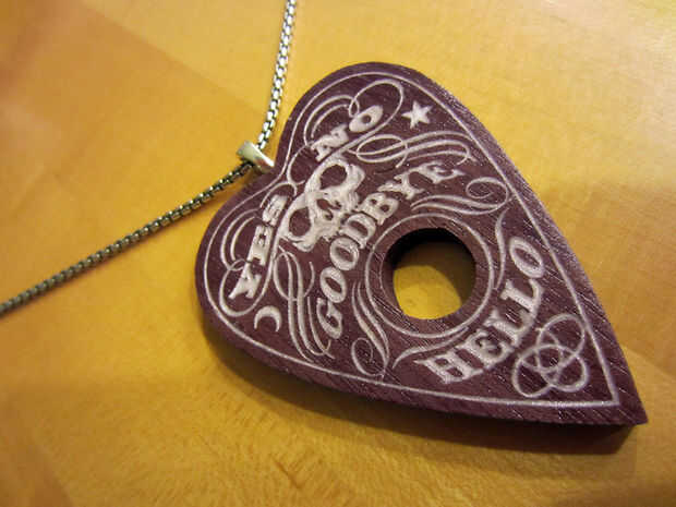 Purpleheart Ouija colgante con incrustaciones de arcilla de polímero