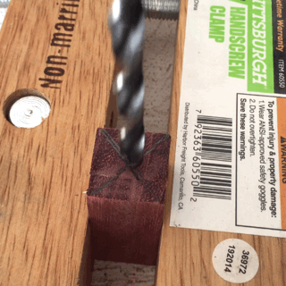 Mis espacios en blanco y la mayoría de los espacios en blanco comercialmente vendidos, era muy cuadrada. Yo no compró un localizador de centro, pero en cambio optó por traza una regla de esquina a esquina y taladro en la intersección. Conseguir un corte recto cuando dividiéndolas hacen esto más fácil! No contar con una prensa del taladro, perforado con cuidado y lentamente con la broca de bradpoint mm 7 provista. El bradpoint mantiene la broca de centrado, más que un poco de giro regular, pero no ocultar taladro mala alineación. Para sostener la pieza de trabajo, utilicé un handscrew madera sin modificar. Muchas personas hacen o modificar para mantener el espacio en blanco, pero tenía muy poco el tema usando como-es. Se recomienda hacer el agujero del centro para el mejor grano de coincidencia, desde cualquier ángulo que se magnifica por la longitud de la chapa.