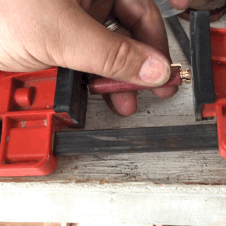 Puse las partes en la sugerencia de la hoja de instrucciones que vino con mi kit. Parece tonto, pero probablemente fue un poco más rápido como resultado. Primero, inserta la punta del lápiz en el frente de la mitad del espacio en blanco y apretar una abrazadera de empuñadura de pistola alrededor de él. Hay un montón de unitasker comprado Prensas para hacer estas operaciones, pero no veo la necesidad y experiencia ahora ha demostrado que no son necesarios. Era fácil ver lo que todo el mundo estaba hablando--las piezas del kit de pluma muy fácilmente no se queda rectas como vas a presionan juntos, pero no parece difícil a la derecha por el camino ya sea. El siguiente fue el mecanismo de giro. Otro gran desconocido para mí era cómo ahora Presione en el mecanismo de giro. Mis instrucciones, dijo algo así como "a la línea", pero había múltiples líneas o paradas. Había también sido advertí con todas las piezas que presionar demasiado sería permanente, por lo que me preocupaba accidentalmente ir demasiado lejos. Mientras que resultó, no pulse lo suficiente el primero dos veces. Me di cuenta de esto cuando la punta de no extender lo suficiente. Terminó siendo la marca más en el mecanismo de giro, no sólo la sección de cobre amarillo.