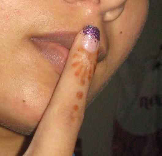 una vez que todo el brillo púrpura es secado, aplique dos capas de capa clara. Aplique la segunda capa después de la 1ª capa se seque.
