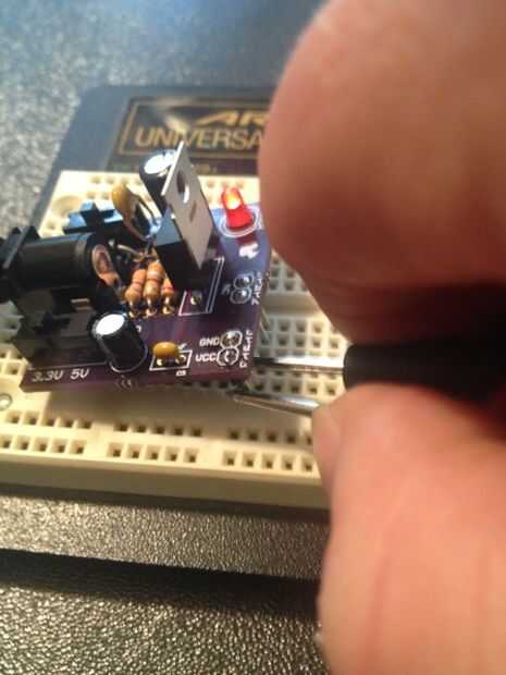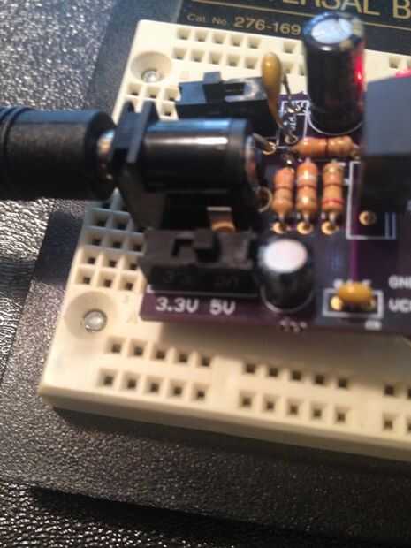 Una vez su tapado el interruptor ON/OFF en ON y usted debería ver la luz por LED. Configurar la selección de voltaje a 3.3V.