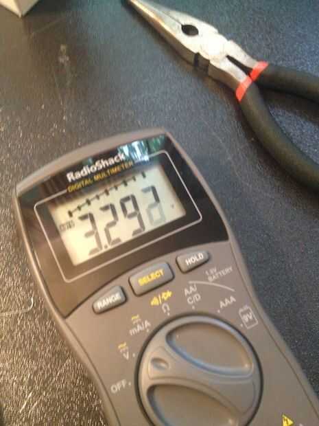 Ponga las sondas en la Vout pins y vemos... 3.29V.