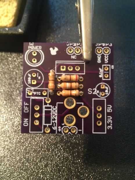 Una vez que la resistencia está en la ubicación de vuelta el PCB y doblar las puntas un poco como se muestra... esto sostenga la pieza en su lugar mientras que la soldadura hacia abajo.