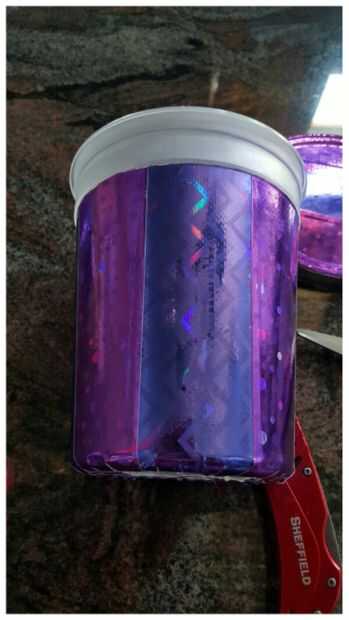 en el 2009 formé un campamento de arte comunidad Go Green y este fue uno de los proyectos de los campistas poco hicieron. La base es reciclada de un envase de plástico de la manteca de cacahuete, pero la diversión es el pequeño errores que decoran l