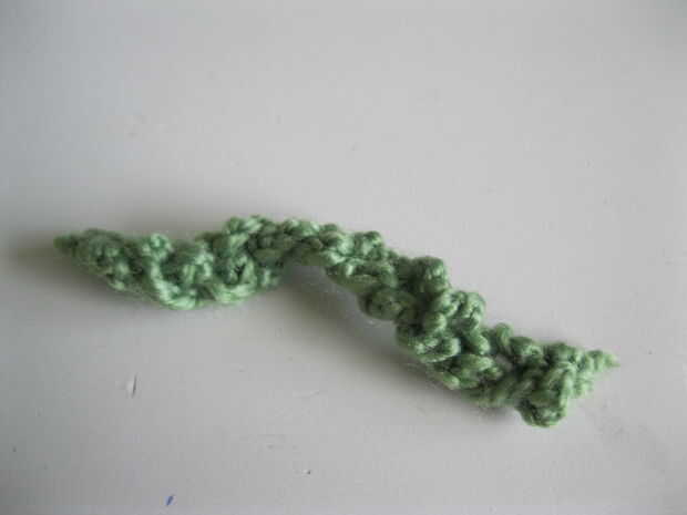 Desechados y con lana verde luz, coser el tallo en la punta de la sección verde sujetada en el paso anterior.