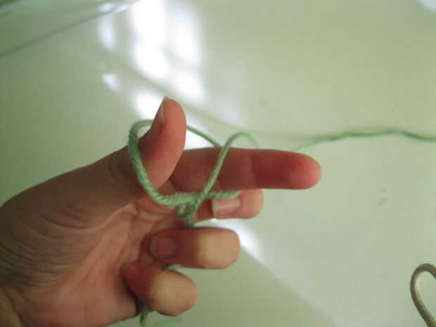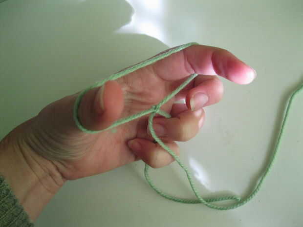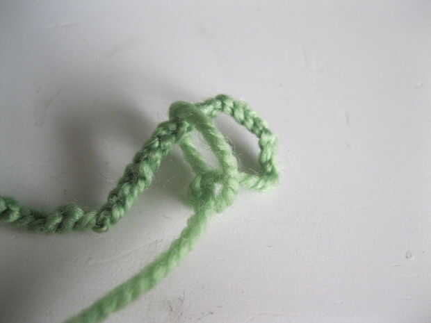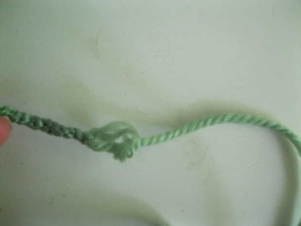1. hacer un lazo y tire del extremo de lana que lleva a la bola por la mitad, apretar 2. Tire del extremo de lana media a través de otra vez, vuelva a apretar 3. Continúe esto hasta que la parte de ganchillo es la longitud deseada 4. cortar la lana y pasar el extremo a través del lazo y apriete